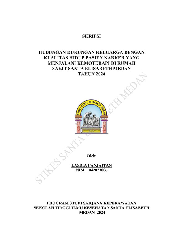 Hubungan Dukungan Keluarga Dengan Kualitas Hidup Pasien Kanker Yang Menjalani Kemoterapi Di Rumah Sakit Santa Elisabeth Medan Tahun 2024