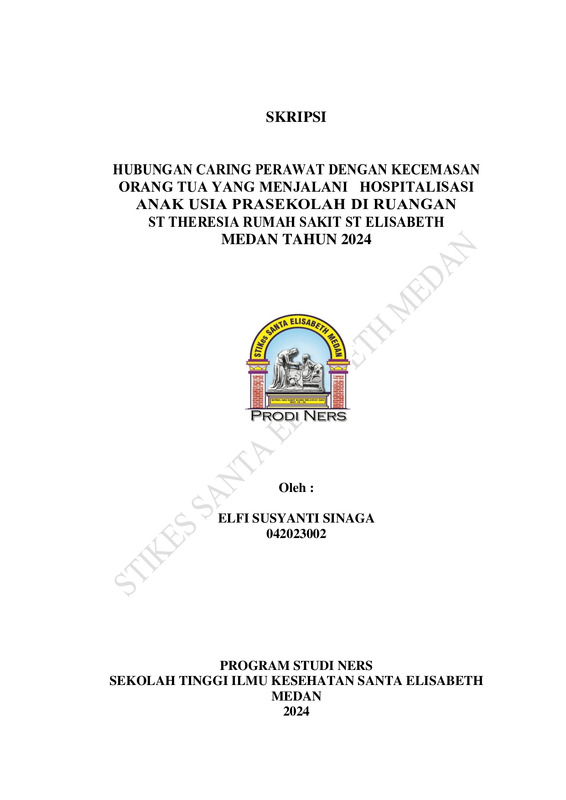Hubungan Caring Perawat Dengan Kecemasan Orang Tua Yang Menjalani Hospitalisasi Anak Usia Prasekolah Di Ruang Santa Theresia Rumah Sakit Santa Elisabeth Medan Tahun 2024