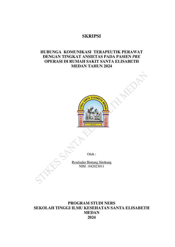 Hubungan Komunikasi Terapeutik Perawat Dengan Tingkat Ansietas Pada Pasien Pre Operasi Di Rumah Sakit Santa Elisabeth Medan Tahun 2024