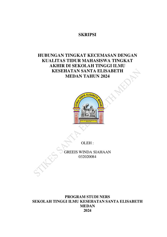 Hubungan Tingkat Kecemasan Dengan Kualitas Tidur Mahasiswa Tingkat Akhir Di Sekolah Tinggi Ilmu Kesehatan Santa Elisabeth Medan Tahun 2024