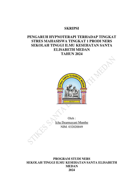 Pengaruh Hypnoterapi Terhadap Tingkat Stres Mahasiswa Tingkat 1 Prodi Ners Sekolah Tinggi Ilmu Kesehatan Santa Elisabeth MedanTahun 2024