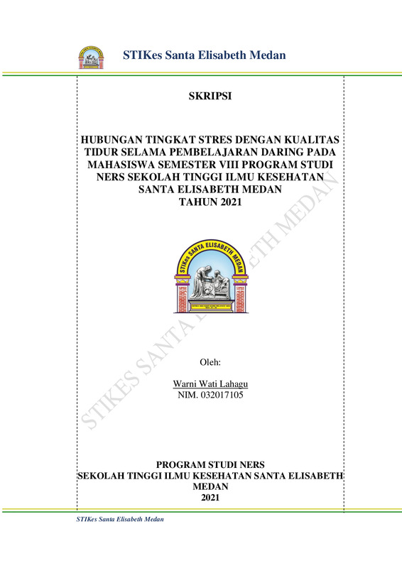 Hubungan Tingkat Stres Dengan Kualitas Tidur Selama Pembelajaran Daring Pada Mahasiswa Semester VIII Program Studi Ners Sekolah Tinggi Ilmu Kesehatan Santa Elisabeth Medan Tahun 2021