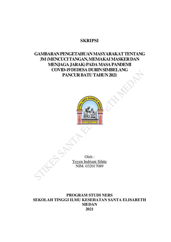 Gambaran Pengetahuan Masyarakat Tentang 3M (Mencuci Tangan, Memakai Masker Dan Menjaga Jarak) Pada Masa Pandemi Covid-19 Di Desa Durin Simbelang Pancur Batu Tahun 2021