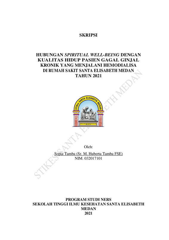 Hubungan Spiritual Well-Being Dengan Kualitas Hidup Pasien Gagal Ginjal Kronik Yang Menjalani Hemodialisa Di Rumah Sakit Santa Elisabeth Medan Tahun 2021