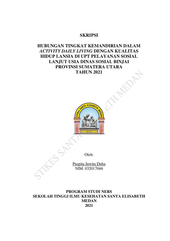 Hubungan Tingkat Kemandirian Dalam Activity Daily Living Dengan Kualitas Hidup Di UPT Pelayanan Sosial Lanjut Usia Dinas Sosial Binjai Provinsi Sumatera Utara Tahun 2021