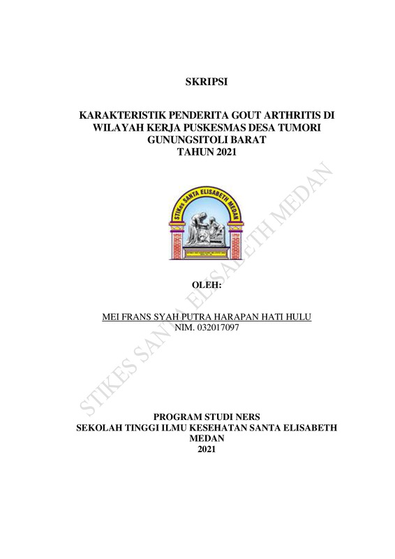 Karakteristik Penderita Gout Arthritis Di Wilayah Kerja Puskesmas Desa Tumori Kecamatan Gunungsitoli Barat