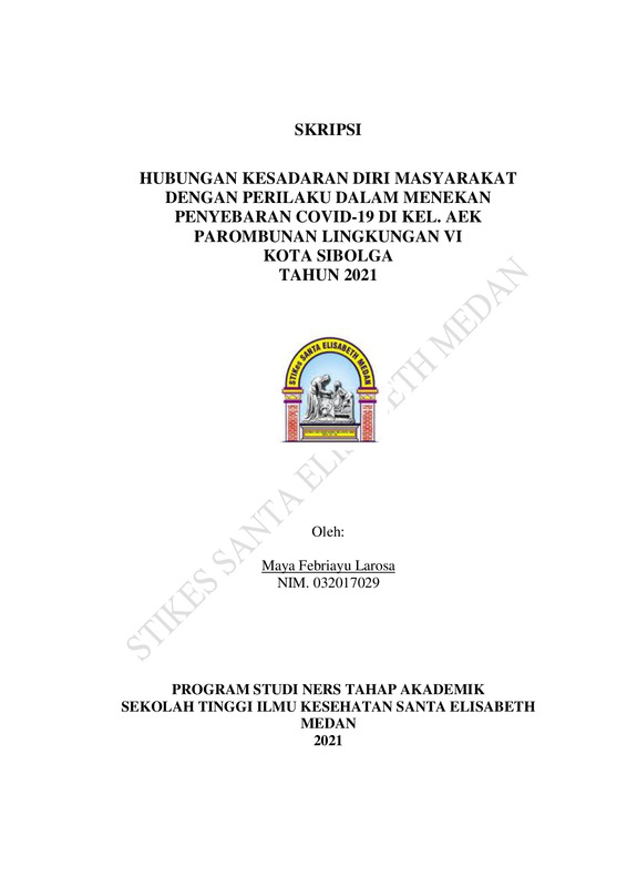 Hubungan Kesadaran Diri Masyarakat Dengan Perilaku Dalam Menekan Penyebaran COVID-19 Di Kel. Aek Parombunan Lingkungan VI Kota Sibolga Tahun 2021