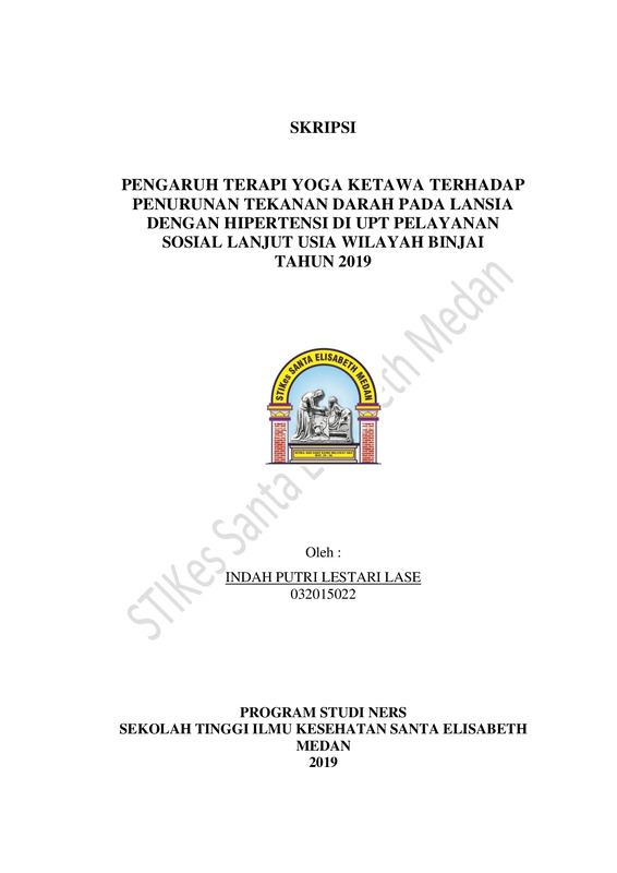 Pengaruh Terapi Yoga Ketawa Terhadap Penurunan Tekanan Darah Pada Lansia Dengan Hipertensi Di UPT Pelayanan Sosial Lanjut Usia Wilayah Binjai Tahun 2019