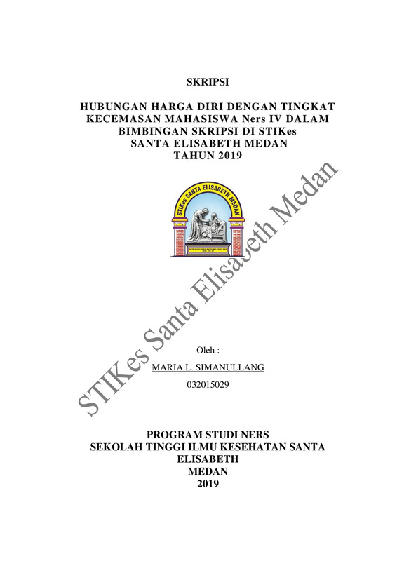 Hubungan Harga Diri Dengan Tingkat Kecemasan Mahasiswa Ners IV Dalam Bimbingan Skripsi Di STIKes Santa Elisabeth Medan Tahun 2019