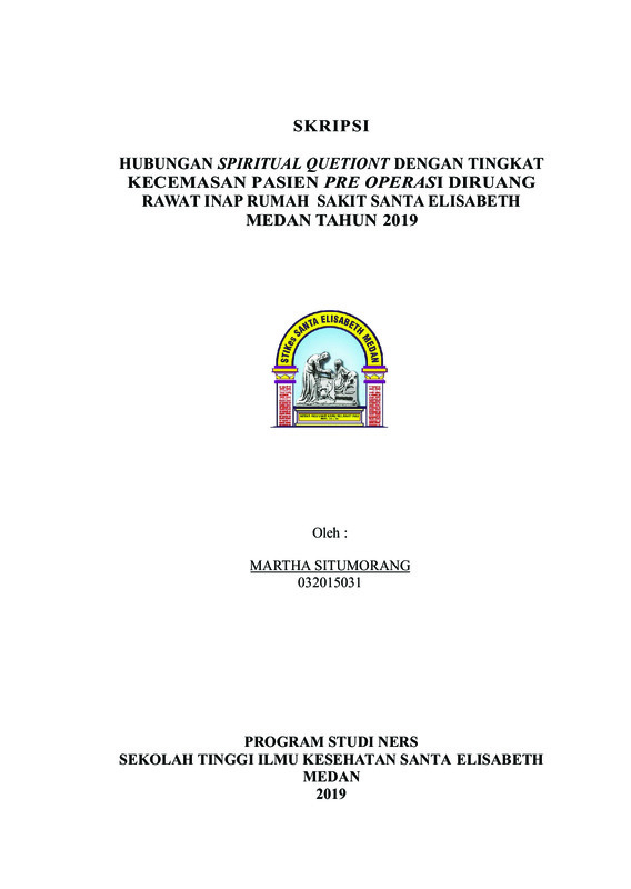 Hubungan Spiritual Quetiont Dengan Tingkat Kecemasan Pasien Pre Operasi Diruang Rawat Inap Rumah Sakit Santa Elisabeth Medan