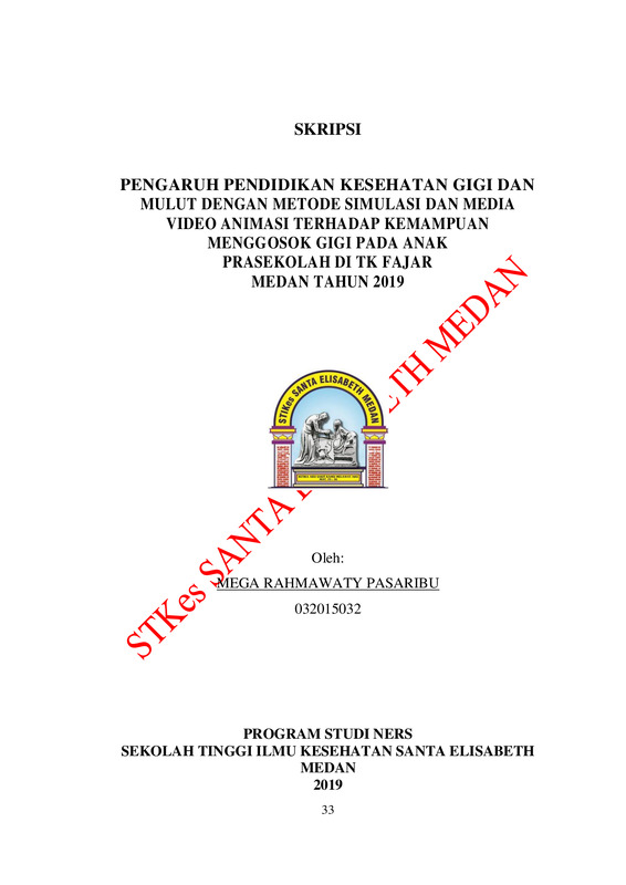 Pengaruh Pendidikan Kesehatan Gigi Dan Mulut Dengan Metode Simulasi Dan Media Video Animasi Terhadap Kemampuan Menggosok Gigi Pada Anak Prasekolah Di TK Fajar Medan Tahun 2019