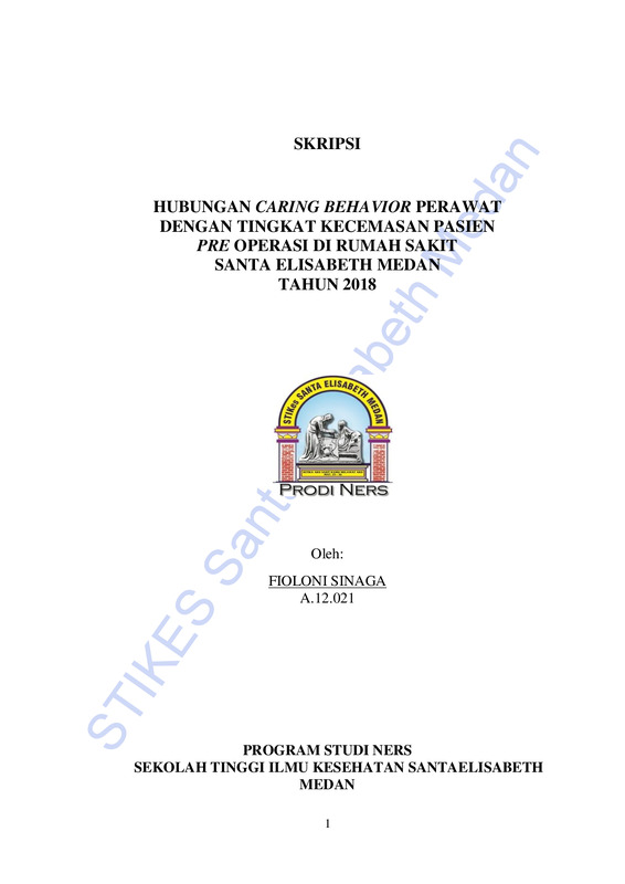 Hubungan Caring Behavior perawat dengan Tingkat Kecemasan pasien Pre Operasi di Rumah Sakit Santa Elisabeth Medan