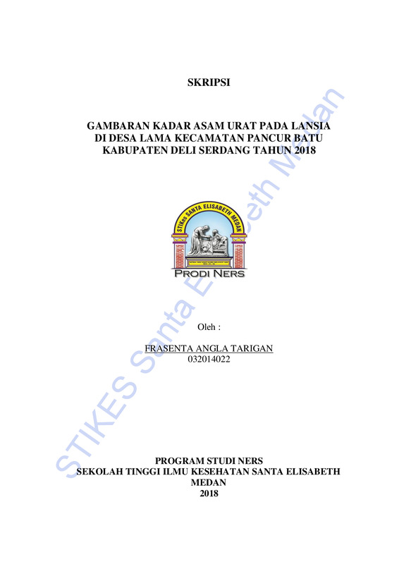 Gambaran Kadar Asam Urat Pada Lansia Di Desa Lama Kecamatan Pancur Batu Kabupaten Deli Serdang Tahun 2018