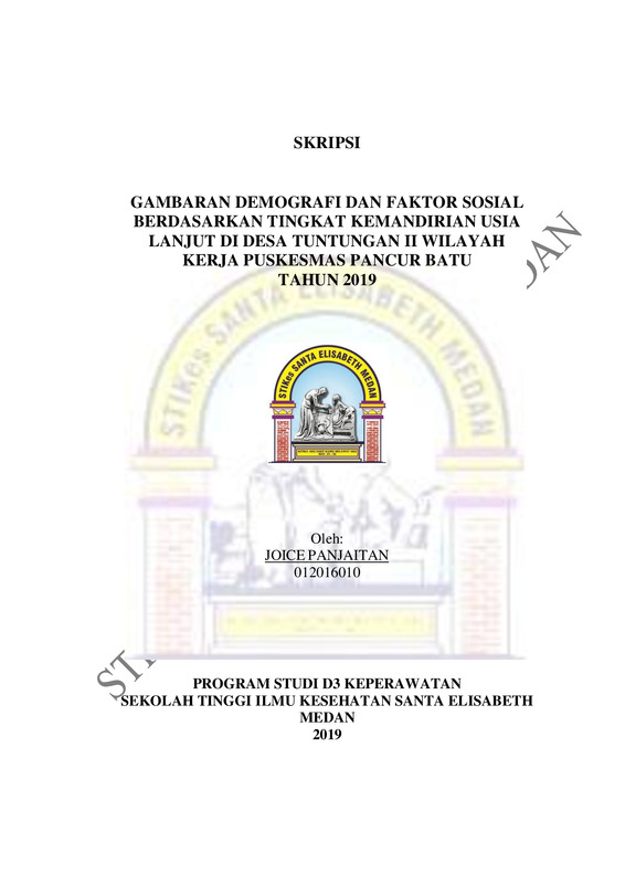 Gambaran Demografi Dan Faktor Sosial Berdasarkan Tingkat Kemandirian Usia Lanjut Di Desa Tuntungan II Wilayah Kerja Puskesmas Pancur Batu Tahun 2019