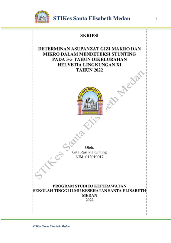 Determinan Asupan Zat Gizi Makro dan Mikro Dalam Mendeteksi Stunting Pada 3-5 Tahun Di Kelurahan Helvetia Lingkungan XI Helvetia Medan Tahun 2022