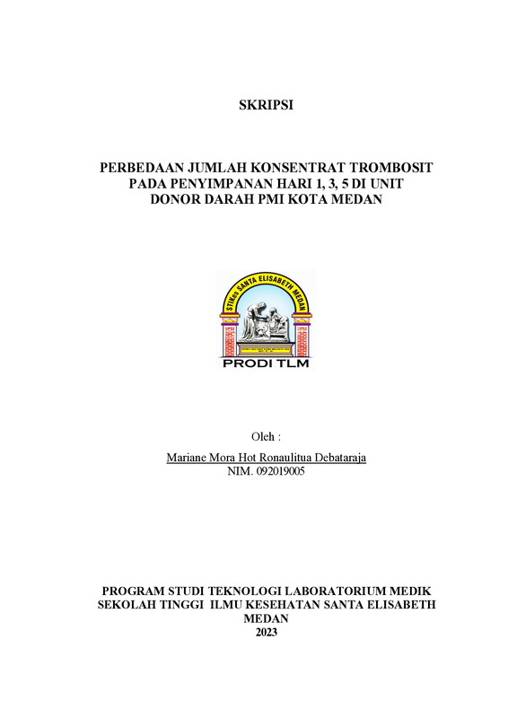 Perbedaan Jumlah Konsentrat Trombosit Pada Penyimpanan Hari 1, 3, 5 Di Unit Donor Darah PMI Kota Medan