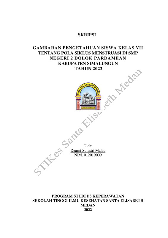 Gambaran Pengetahuan Siswa Kelas VII Tentang Pola Siklus Menstruasi DI SMP Negeri 2 Dolok Pardamean Kabupaten Simalungun Tahun 2022