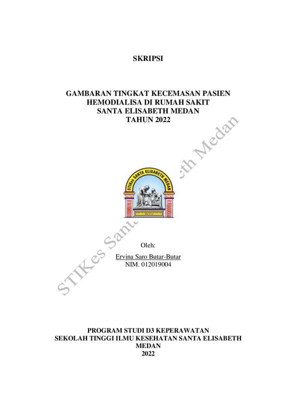 Gambaran Tingkat Kecemasan Pasien Hemodialisa di Rumah Sakit Santa Elisabeth Medan Tahun 2022