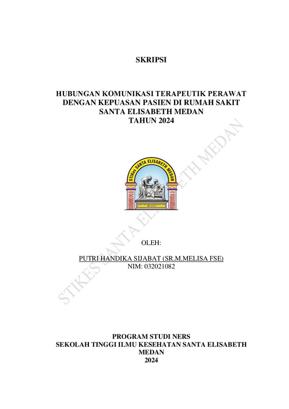 Hubungan Komunikasi Terapeutik Perawat Dengan Kepuasan Pasien Di Rumah Sakit Santa Elisabeth Medan Tahun 2024