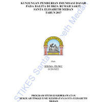 309 (38.43%). Dan berdasarkan kunjungan pemberian imunisasi sebagian besar Lengkap (99,62%). Kesimpulan dalam penelitian ini adalah Belum semua balita yang berkunjungan di BKIA Rumah Sakit Santa Elisabeth Medan Tahun 2017 mendapatkan imunisasi dasar. Saran dalam penelitian ini adalah perlu diberikan kesehatan diposyandu sehingga cakupan imunisasi dapat dicapai 100%. Hal ini