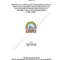 pelaksanaan kuliah daring Prodi Ners Tingkat II di STIKes Santa Elisabeth Medan Tahun 2021. Diharapkan penelitian ini dapat dijadikan sebagai masukan, dan bahan pengajaran bagi seluruh dosen dan tenaga kependidikan agar lebih menerapkan caring behaviors dosen dalam melakukan aktivitas dalam perkuliahan daring sehingga dapat meningkatkan kepuasan mahasiswa - Creator