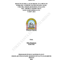 - Hubungan Pola Asuh Orang Tua Dengan Perilaku Temper Tantrum Pada Anak Usia Pra Sekolah Di Desa Tualang Kec. Siempat Nempu Hulu Kab. Dairi Sidikalang