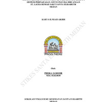 menyebabkan gangguan pernapasan signifikan, pemasangan kateter pigtail menjadi salah satu pilihan tindakan untuk drainase cairan. Kateter pigtail merupakan metode minimal invasif yang efektif untuk mengeluarkan cairan pleura secara bertahap, dengan risiko komplikasi yang relatif rendah. Metode dalam karya ilmiah akhir ini menggunakan metode studi kasus dengan pendekatan asuhan keperawatan pada Nn. L dengan gangguan sistem pernafasan : efusi pleura di ruang rawat inap St. Laura Rumah Sakit Santa Elisabeth Medan. Hasil: Tanda dan gejala yang timbul pada kasus efusi pleura didapatkan semua sesuai dengan teori dan data yang ditemukan di lapangan, selain itu penentuan diagnosa