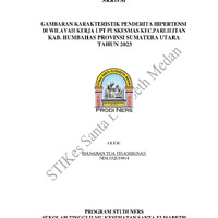 Hipertensi adalah peningkatan aliran darah yang terjadi dalam tubuh manusia yang menjadi penyebab utama kematian secara global. Hipertensi tidak hanya menyerang orang lanjut usia, namun juga usia produktif. Hipertensi juga disebut the silent killer. Tujuan penelitian ini untuk mengetahui gambaran karakteristik penderita hipertensi di wilayah kerja Upt Puskesmas kec. Parlilitan Kab. Humbahas. prov. Sumatera Utara Tahun 2023. Penelitian ini menggunakan metode deskriptif. Teknik pengambilan sampel dengan menggunakan total sampling dengan jumlah sampel sebanyak 86 responden. Alat ukur yang di pakai adalah Lembar Observasi. Hasil penelitian didapatkan pada usia 55- 65 tahun dengan jumlah 30 responden (34,9%), usia 26-35 tahun berjumlah 4 responden (4,7%). Berdasarkan faktor jenis kelamin, laki-laki sebanyak 46 orang (53,5%), dan perempuan sebanyak 40 orang (46,5%). Berdasarkan pendidikan, SMA/SMK sebanyak 33 orang (38,4%), perguruan tinggi sebanyak 14 orang (16,3%). berdasarkan pekerjaan, petani sebanyak 43 orang (50,0%), IRT sebanyak 12 orang (14,0%), ASN sebanyak 31 orang (36,2%). Berdasarkan status perkawinan, yang sudah menikah sebanyak 84 orang (97,7 %), dan yang belum menikah sebanyak 2 orang (2,3 %). Berdasarkan Obat/Medikasi tidak mengkonsumsi obat hipertensi sebanyak 67 orang (66,3%), dan mengkonsumsi obat hipertensi sebanyak 34 orang (33,7%). Berdasarkan gejala yang sering dialami responden, gejala pusing sebanyak 71 orang (82,6%), gejala nyeri sebanyak 15 orang (17,4%). Berdasarkan hasil penelitian, pada penderita Hipertensi dimana tekanan darah mayoritas pada Hipertensi derajat ll sebanyak 40 orang (50,5%), dan data demografi tekanan darah minoritas pada prehipertensi sebanyak 8 orang (7,9%).