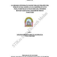 masalah yang dihadapi klien melalui interaksi antara perawat dan klien. Komunikasi terapeutik merupakan hubungan perawat dan klien yang dirancang untuk memfasilitasi tujuan terapi dalam pencapaian tingkat kesembuhan yang optimal dan efektif. Tujuan dalam penelitian ini untuk mengetahui gambaran penerapan komunikasi terapeutik perawat dalam pelayanan keperawatan pada pasien rawat inap di ruang internis Rumah Sakit Santa Elisabeth Medan Tahun 2023. Jenis penelitian dalam penelitian ini adalah deskriptif dengan desain penelitian cross sectional, jumlah populasi 79 responden. Teknik pengambilan sampel yang digunakan dalam penelitian ini adalah metode purposive sampling. Instrument yang digunakan adalah kuesioner komunikasi terapeutik. Berdasarkan Hasil tahap pra interakasi menunjukkan kategori baik (96,2%) dan cukup baik (3,8%), berdasarkan tahap orientasi baik (80%) dan cukup baik ( 20%), berdasarkan tahap kerja baik (99%) dan cukup baik (1%), berdasarkan tahap terminasi baik (54%), cukup baik (44%) dan kurang baik (1%), berdasarkan komunikasi terapeutik baik (76%) dan cukup baik (24%). Di harapkan rumah sakit memberikan motivasi kepada perawat untuk tetap meningkatkan dan mempertahan kan komunikasi terapeutik perawat pada setiap pasien. Perawat juga diharapkan selalu menerapkan komunikasi terapeutik fase pra interaksi, fase orientasi, fase kerja, dan fase terminasi - Creator
