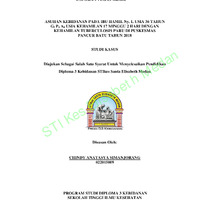 Menurut data Word Health Organitation (WHO) pada tahun 2010 . Estimasi prevalensi Tuberculosis semua kasus adalah sebesar 660,000 dan estimasi insidensi berjumlah 430,000 kasus baru per tahun.Tujuan:mendapat pengalaman nyata dalam melaksanakan Asuhan Kebidanan pada Ibu Hamil Ny. L GIP0A0 usia kehamilan 17 minggu 2 hari dengan Kehamilan Tuberculosis Paru di Puskesmas Pancur Batu Tahun 2018 dengan menggunakan pendekatan manajemen kebidanan Varney. Metode:Berdasarkan studi kasus pada Ny.L, metode yang digunakan untuk pengumpulan data yaitu data primer yang terdiri dari pemeriksaan fisik inspeksi tampak turgor kulit kering, mata cekung dan lidah kering, pemeriksaan palpasi meliputi nadi dan pemeriksaan auskultasi meliputi pemeriksaan tekanan darah (TD). Hasil :Berdasarkan kasus Ny. L dengan Kehamilan Tuberculosis Paru dilakukan