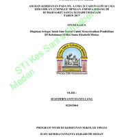 Santa Elisabeth Batam Tahun 2017. Hasil dan Kesimpulan : Pemeriksaan fisik pada wajah pucat, bibir pecah-pecah dan lidah kering dan luka, konjungtiva dan kuku tampak pucat dan dilakukan pemeriksaan penunjang untuk memeriksa kadar Hb pada darah yaitu 7 gr%. Sehingga dilakukan pemantauan kepada Ny. A, masalah ini sudah teratasi sebagian dan diharapkan pada semua tenaga kesehatan untuk lebih menerapkan asuhan kebidanan pada kasus ibu hamil dengan anemia sedang sesuai dengan prosedur yang ada - Creator