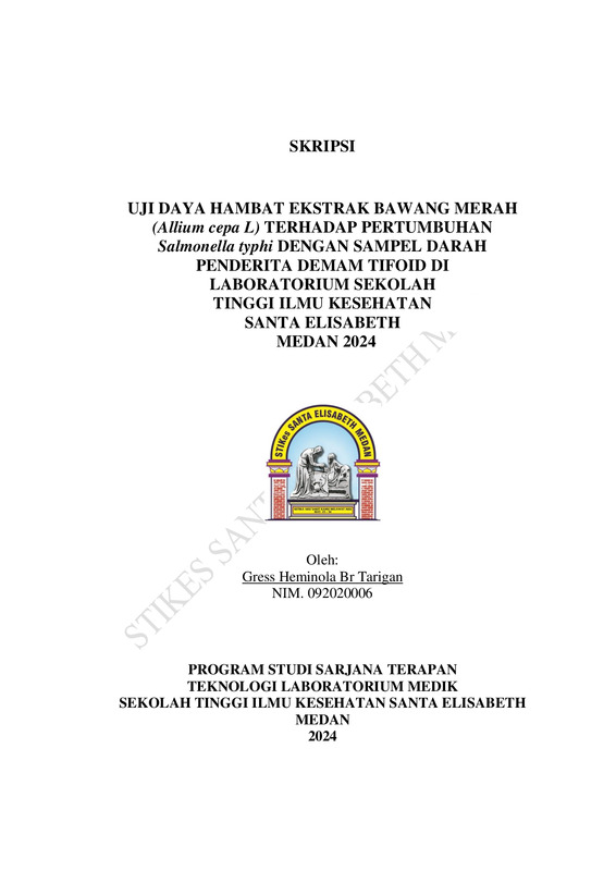 Uji Daya Hambat Ekstrak Bawang Merah (Allium cepa L) Terhadap Pertumbuhan Salmonella Typhi Dengan Sampel Darah Penderita Demam Tifoid Di Laboratorium Sekolah Tinggi Ilmu Kesehatan Santa Elisabeth Medan 2024