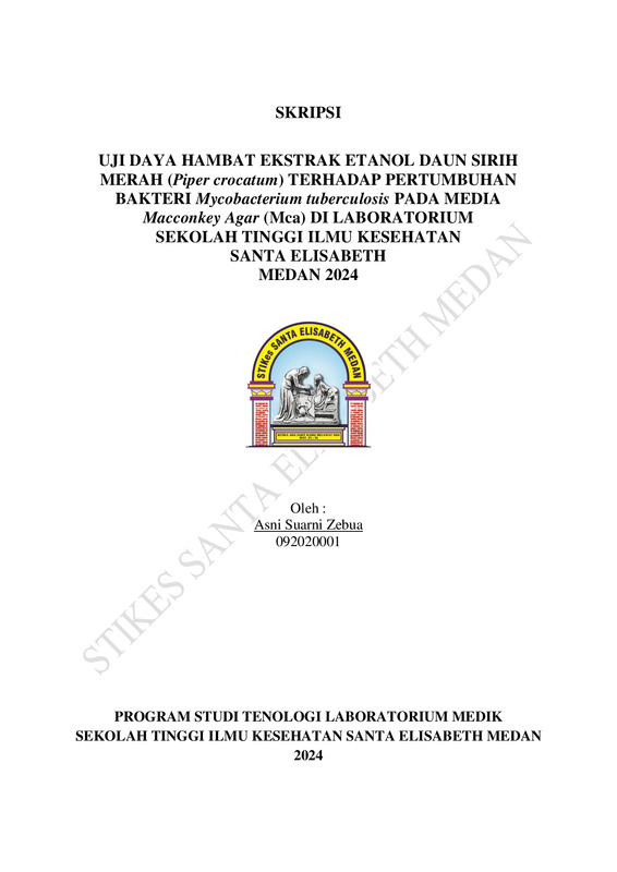 Uji Daya Hambat Ekstrak Etanol Daun Sirih Merah (Piper crocatum) Terhadap Pertumbuhan Bakteri Mycobacterium Tuberculosis Pada Media Macconkey Agar (Mca) Di Laboratorium Sekolah Tinggi Ilmu Kesehatan Santa Elisabeth Medan 2024