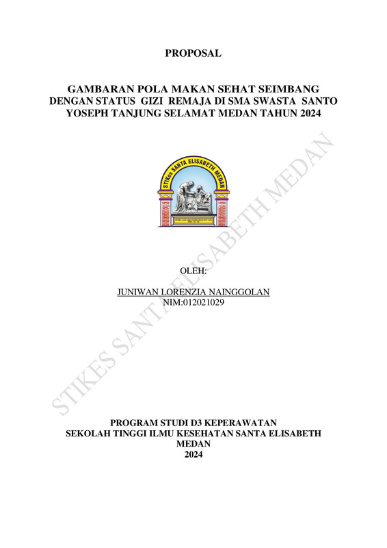Gambaran Pola Makan Sehat Seimbang Dengan Status Gizi Remaja di SMA Swasta Santo Yoseph Tanjung Selamat Medan Tahun 2024
