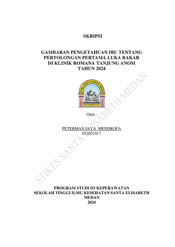 Gambaran Pengetahuan Ibu Tentang Pertolongan Pertama Luka Bakar Di Klinik Romana Tanjung Anom Tahun 2024
