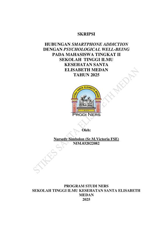 Hubungan Smartphone Addiction Dengan Psychological Well-Being Pada Mahasiswa Tingkat II Sekolah Tinggi Ilmu Kesehatan Santa Elisabeth Medan Tahun 2025