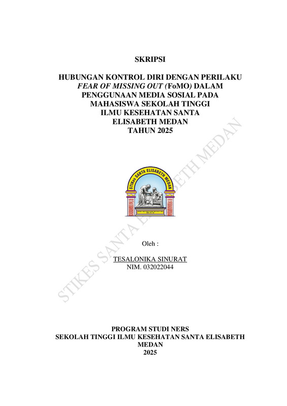 Hubungan Kontrol Diri Dengan Perilkau Fear Of Missing Out (FoMO) DalamPenggunaan Media Sosial Pada Mahasiswa Di Sekolah Tinggi Ilmu Kesehatan Santa Elisabeth Medan Tahun 2025