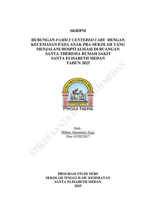 Hubungan Family Centered Care Dengan Kecemasan Pada Anak Pra-sekolah Yang Menjalani Hospitalisasi Di Ruangan Santa Theresia Rumah Sakit Santa Elisabeth Medan Tahun 2025