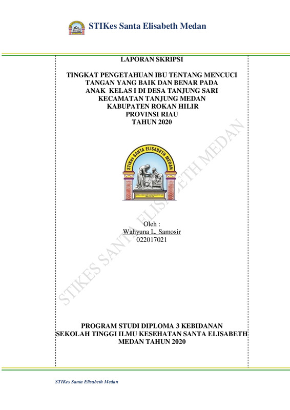 Tingkat Pengetahuan Ibu Tentang Mencuci Tangan Yang Baik Dan Benar Pada Anak Kelas I Di Desa Tanjung Sari Kecamatan Tanjung Medan Kabupaten Rokan Hilir Provinsi Riau tahun 2020