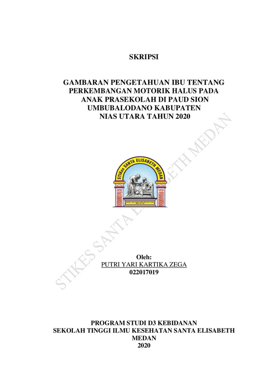 Gambaran pengetahuan ibu tentang perkembangan motorik halus pada anak prasekolah di Paud Umbubalodano Kecamatan Sitolu Ori Kabupaten Nias Utara Tahun 2020