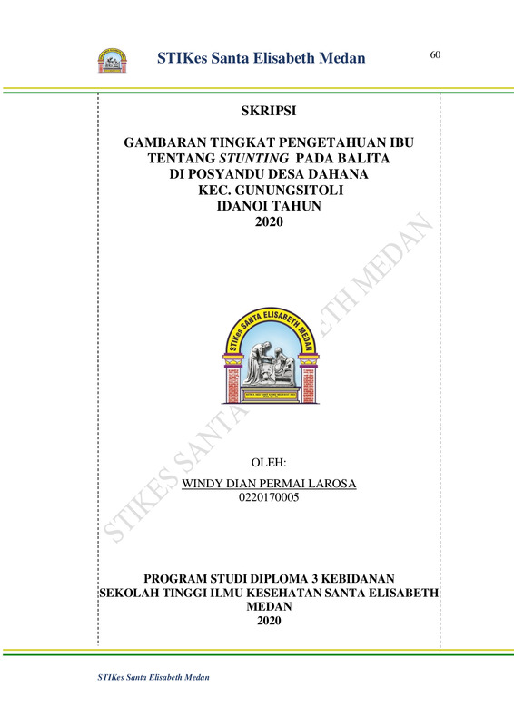 Gambaran Tingkat Pengetahuan Ibu Tentang STUNTING Pada Balita Di Posyandu Desa Dahana Kec. Gunungsitoli Idanoi Program Studi Diploma 3 Kebidanan 2020