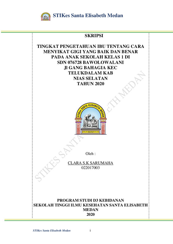 Tingkat Pengetahuan Ibu Tentang Cara Menyikat Gigi Yang Baik Dan Benar Pada Anak Usia Sekolah Kelas 1 yang bersekolah di SDN 076728 BawolowalaniTahun 2020