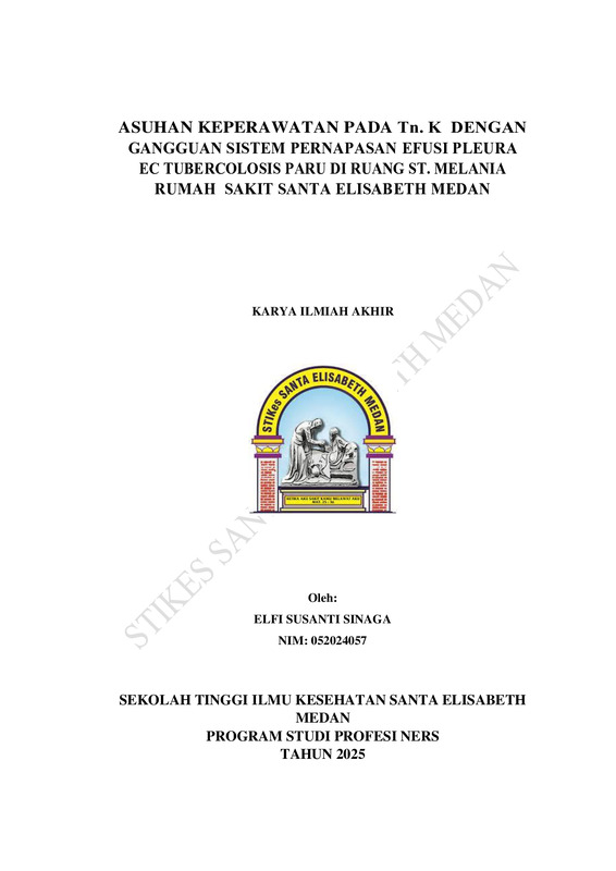 Asuhan Keperawatan Medikal Bedah Dengan Sistem Pernapasan : Efusi pleura ec Tuberkulosis Paru Pada Tn.K Di Ruang Rawat Inap Melania Rumah Sakit Santa Elisabeth Medan 2025