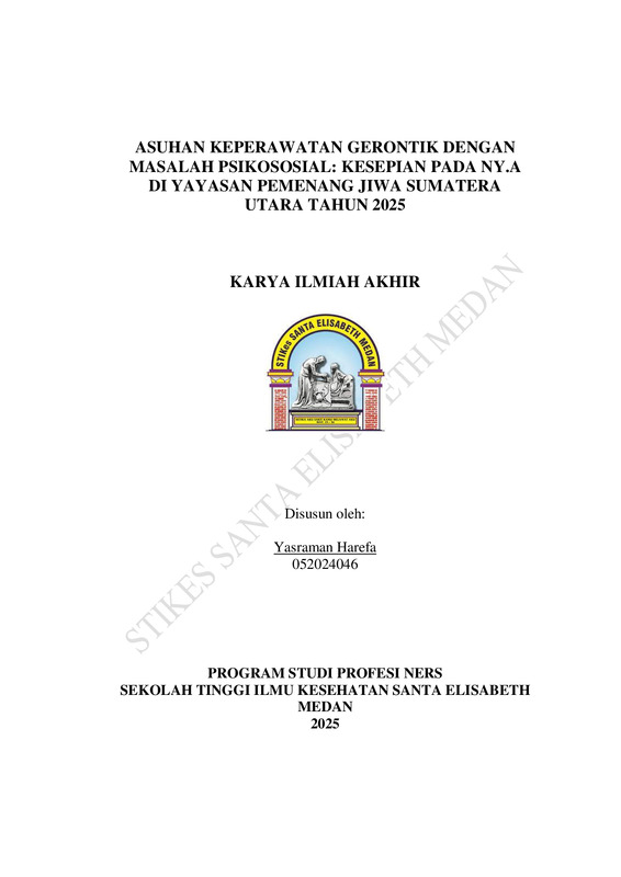 Asuhan Keperawatan Gerontik Dengan Masalah Psikososial: Kesepian Pada Ny.A Di Yayasan Pemenang Jiwa Sumatera Utara Tahun 2025