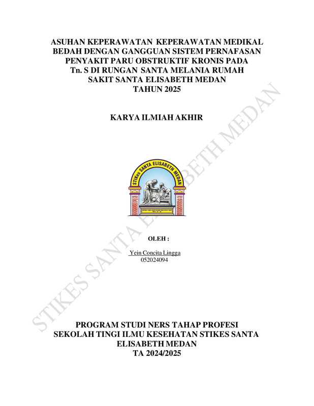 Asuhan Keperawatan Medikal Bedah Dengan Masalah Sistem Pernapasa Penyakit Paru Obstruktif Pada Tn. S Diruangan Santa Melania Rumah sakit Santa Elisabeth Medan Tahun 2025