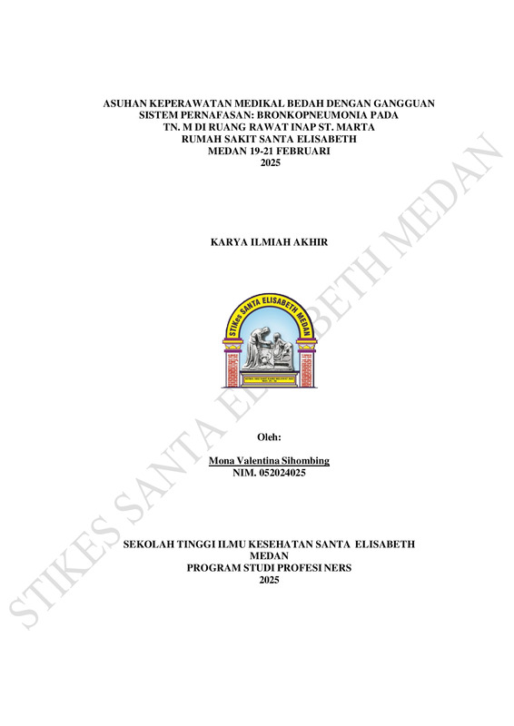 Asuhan Keperawatan Medikal Bedah dengan Gangguan Sistem Pernafasan : Bronkopneumonia Pada Tn. M Di Ruang Rawat Inap St. Marta Rumah Sakit Santa Elisabeth Medan 19-21 Februari 2025