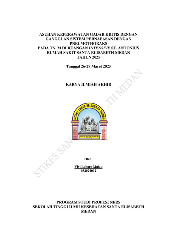Asuhan Keperawatan Gadar Kritis Dengan Gangguan Sistem Pernapasan Pneumothorax Pada Tn. M Di Ruang Intensive Rumah Sakit Santa Elisabeth Medan