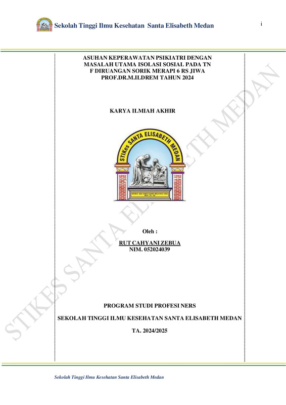 Asuhan Keperawatan Psikiatri Dengan Masalah Utama Isolasi Sosial PadaTn F Diruangan Sorik Merapi 6 Rs Jiwa Prof. Dr. M. Ildrem Tahun 2024