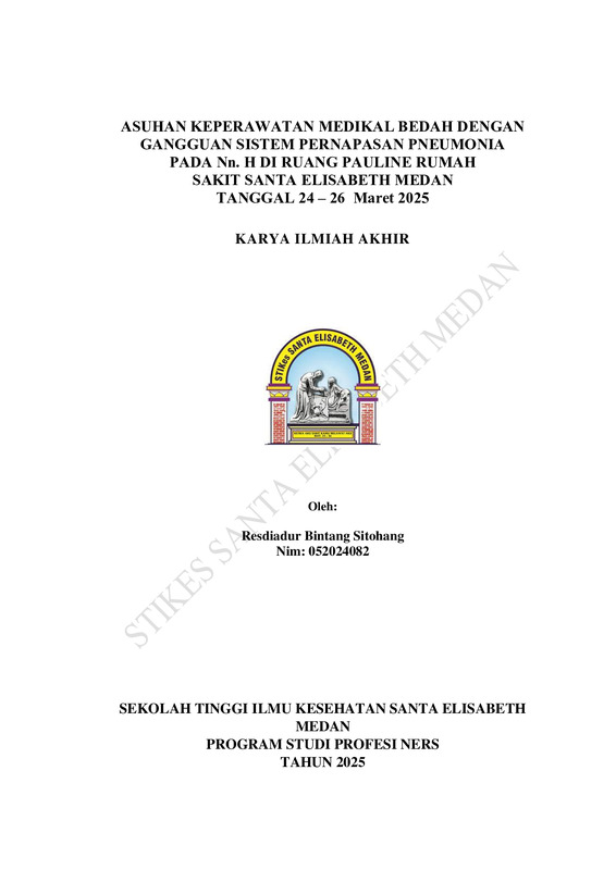 Asuhan Keperawatan Medikal Bedah Dengan Gangguan Sistem Pernapasan Pneumonia Pada Nn. H Di Ruang Pauline RS Santa Elisabeth Medan