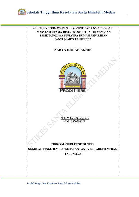 Asuhan Keperawatan Gerontik Pada Ny.A Dengan Masalah Utama Distress Spiritual Di Yayasan Pemenang Jiwa Sumatra Rumah Pemulihan Panti Jompo Tahun 2025